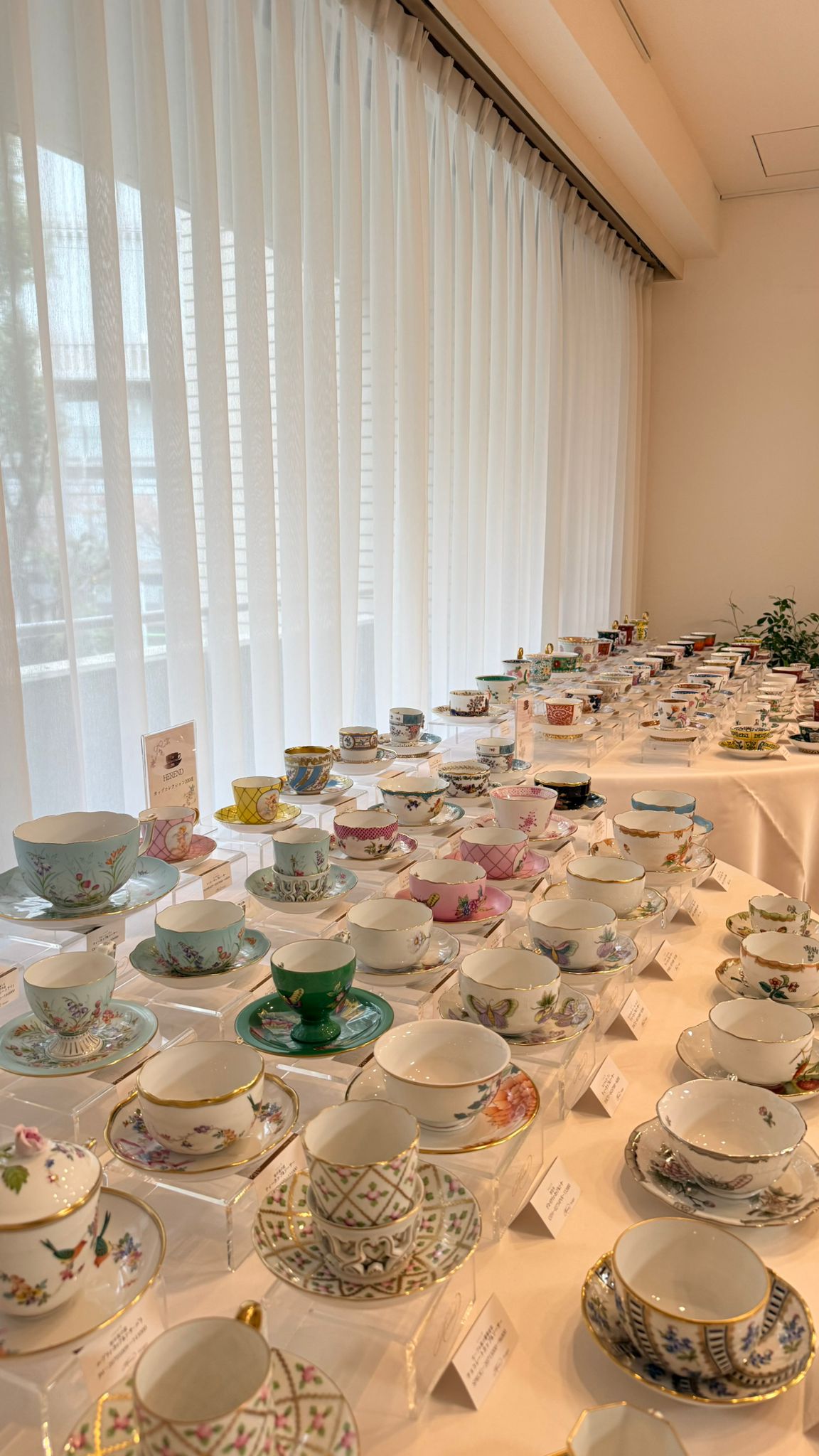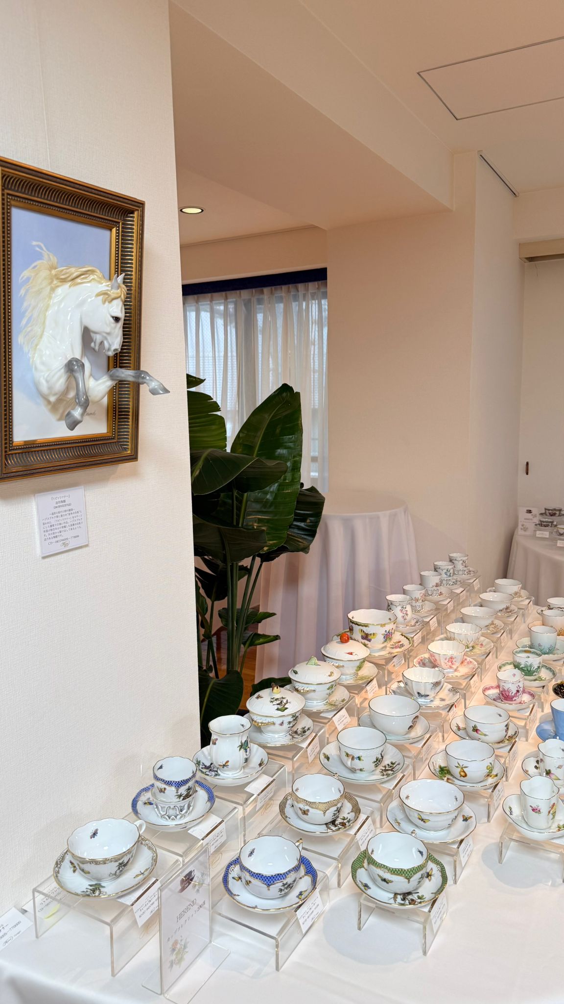 A tárlaton 200 darab, a Herendi Porcelánmanufaktúra jól ismert motívumaival díszített teáscsésze szett került bemutatásra. A vendégek különösen nagy figyelmet szenteltek a jubileumra készített, herendi mesterfestők által alkotott daraboknak, így a pillangó motívumú porcelánoknak és a háromdimenziós porcelánplaketteknek, amelyek egyszerre tükrözték Herend gazdag hagyományait és a megújulásra nyitott szemléletet.